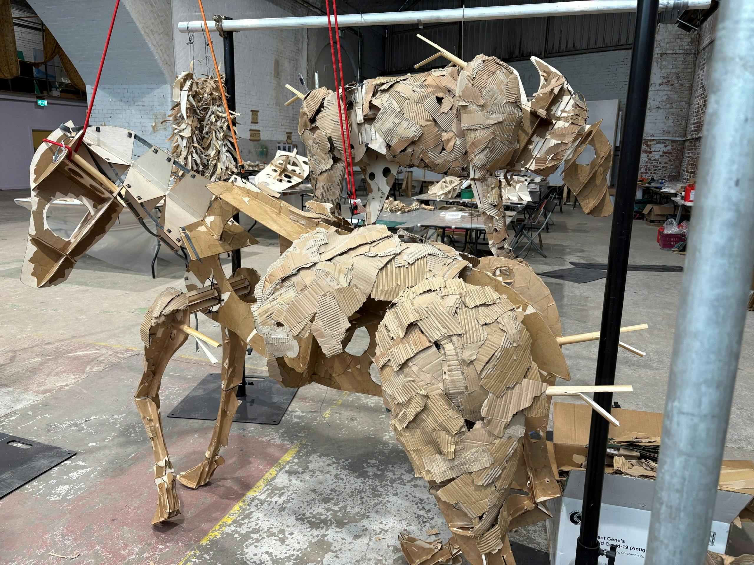 This wasn’t just theatre—it was a 20,000km migration designed to galvanise change. At every stop, new animals joined the journey, built by local communities in hands-on workshops led by master puppeteer Alison Duddle of A Bird in the Hand Theatre. I joined the creative stampede in Manchester—starting with articulated wildebeest legs, then constructing pepakura deer heads, and shaping antelope bodies. The builds were broken down into bite-sized tasks, making it possible for anyone to take part, regardless of experience.